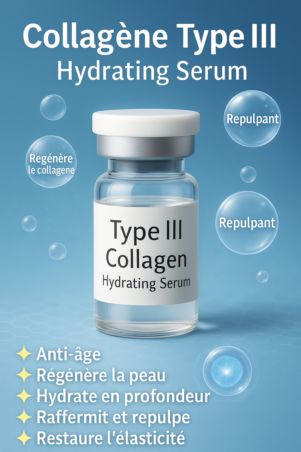 Collagène type III 🧬 : Très proche du collagène naturel de ta peau, super bien absorbé et hautement pur.