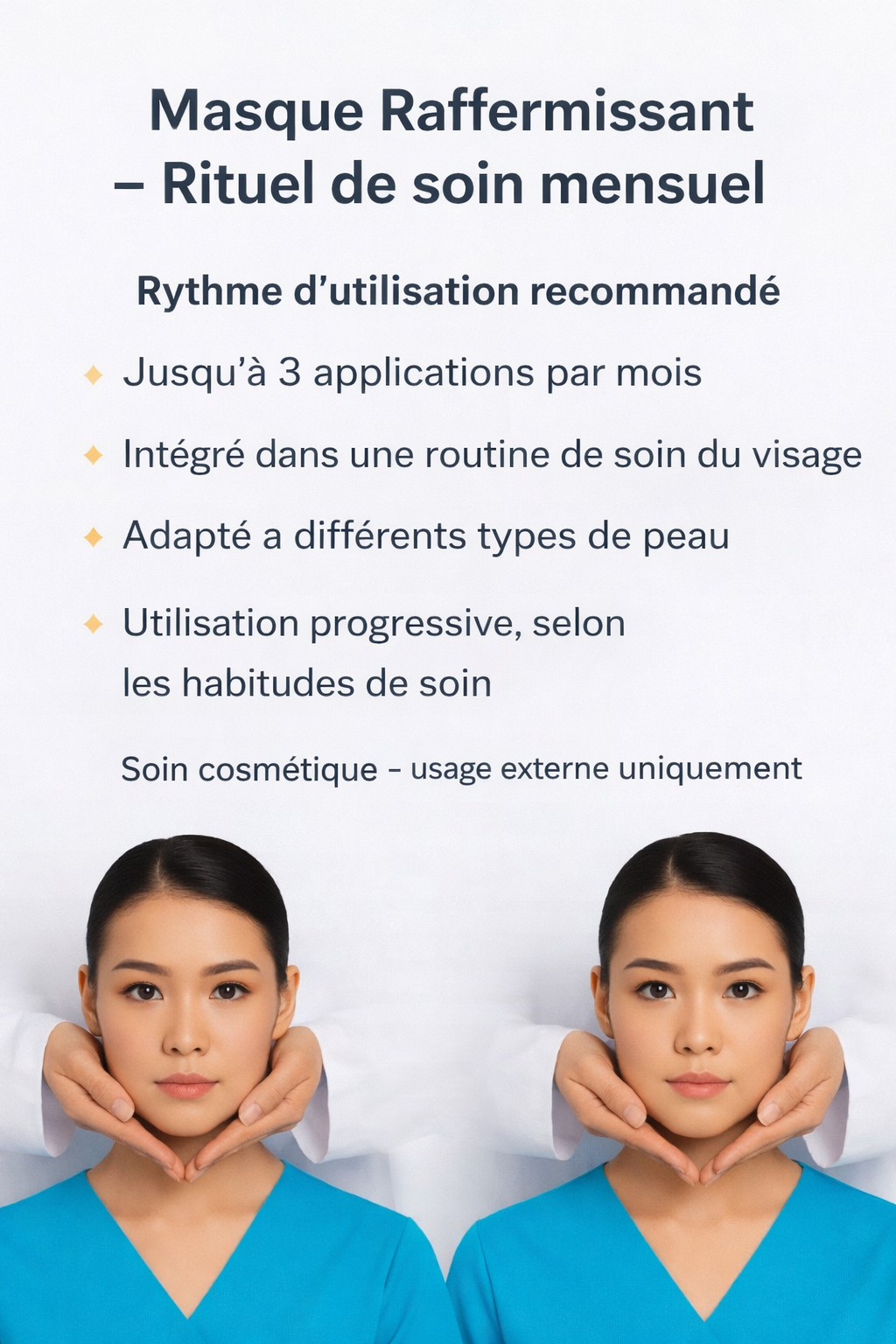 Ce masque à l’unité s’intègre dans une routine de soin du visage pour accompagner l’apparence de tonicité et de confort cutané. Il est idéal pour découvrir le soin, réaliser une séance ponctuelle ou entretenir la peau entre deux routines.